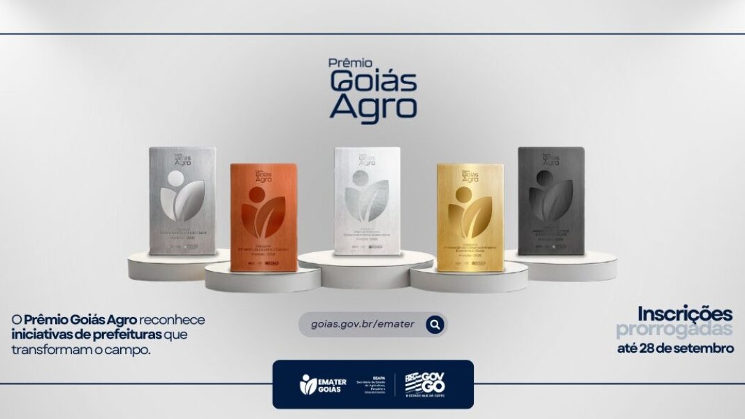 A Emater Goiás anunciou a prorrogação do prazo de inscrições para o Prêmio Goiás Agro, que agora seguem abertas até o dia 28 de setembro de 2025. A medida busca ampliar a participação dos municípios e garantir que mais prefeituras tenham tempo hábil para enviar seus projetos.