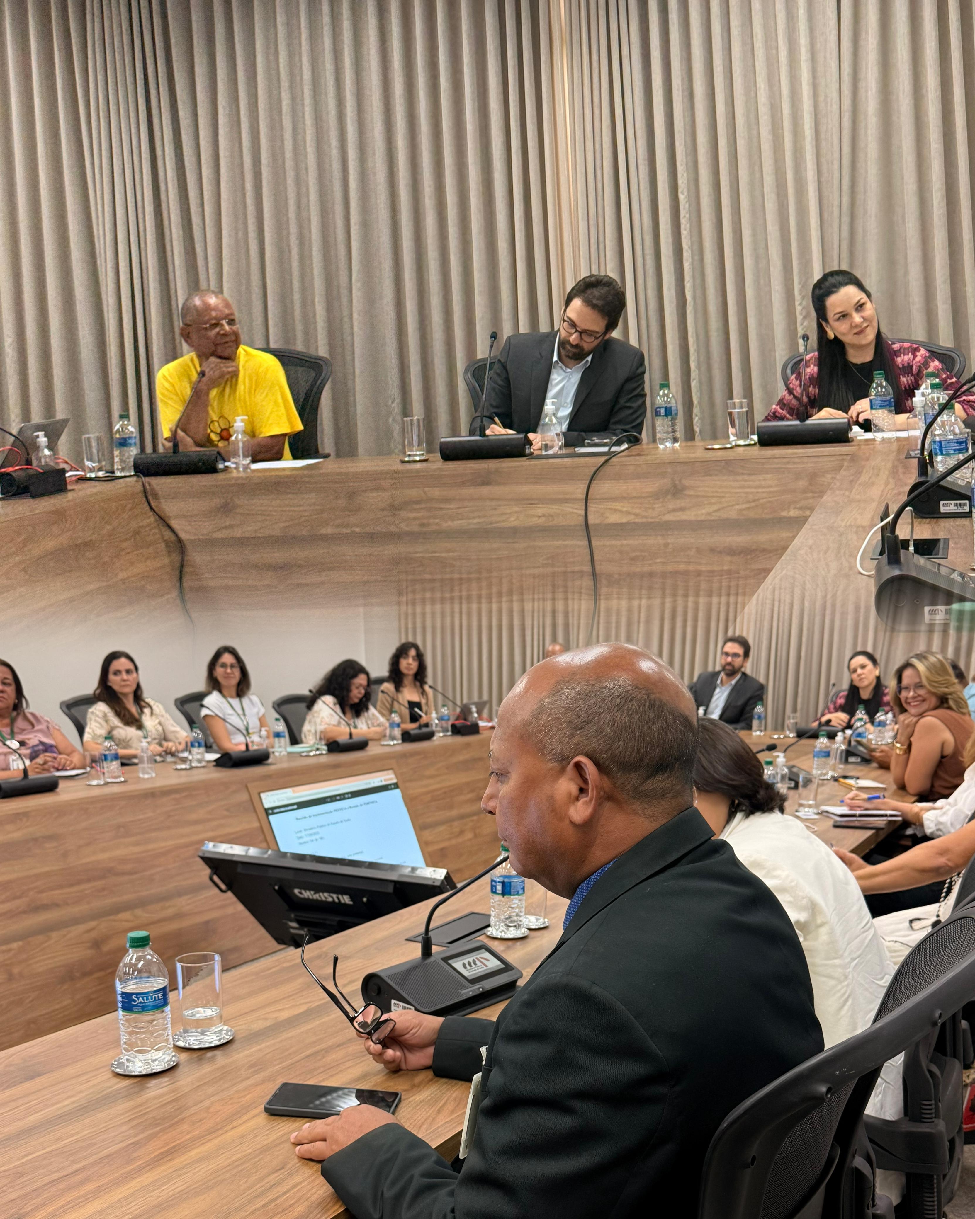 O encontro ocorreu na Sala 201 da sede do MP-GO, em Goiânia, reunindo autoridades, representantes institucionais e especialistas da área para tratar de ações estratégicas voltadas ao fortalecimento das políticas de proteção de crianças e adolescentes contra todas as formas de violência sexual.