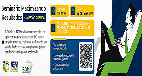 A Federação Goiana de Municípios (FGM), em parceria com o Instituto Brasileiro de Gestão de Resultados (IBGR), promove no dia 26 de fevereiro, às 8hs, um evento inédito voltado para o fortalecimento da gestão municipal. O I Seminário Maximizando Resultados para Gestão Pública será realizado na sede da FGM, é tem como objetivo contribuir para a ampliação da eficácia administrativa, com foco em planejamento estratégico, aumento de receitas, além da melhoria da educação e da saúde, por meio de um gerenciamento eficiente e orientado para resultados concretos.