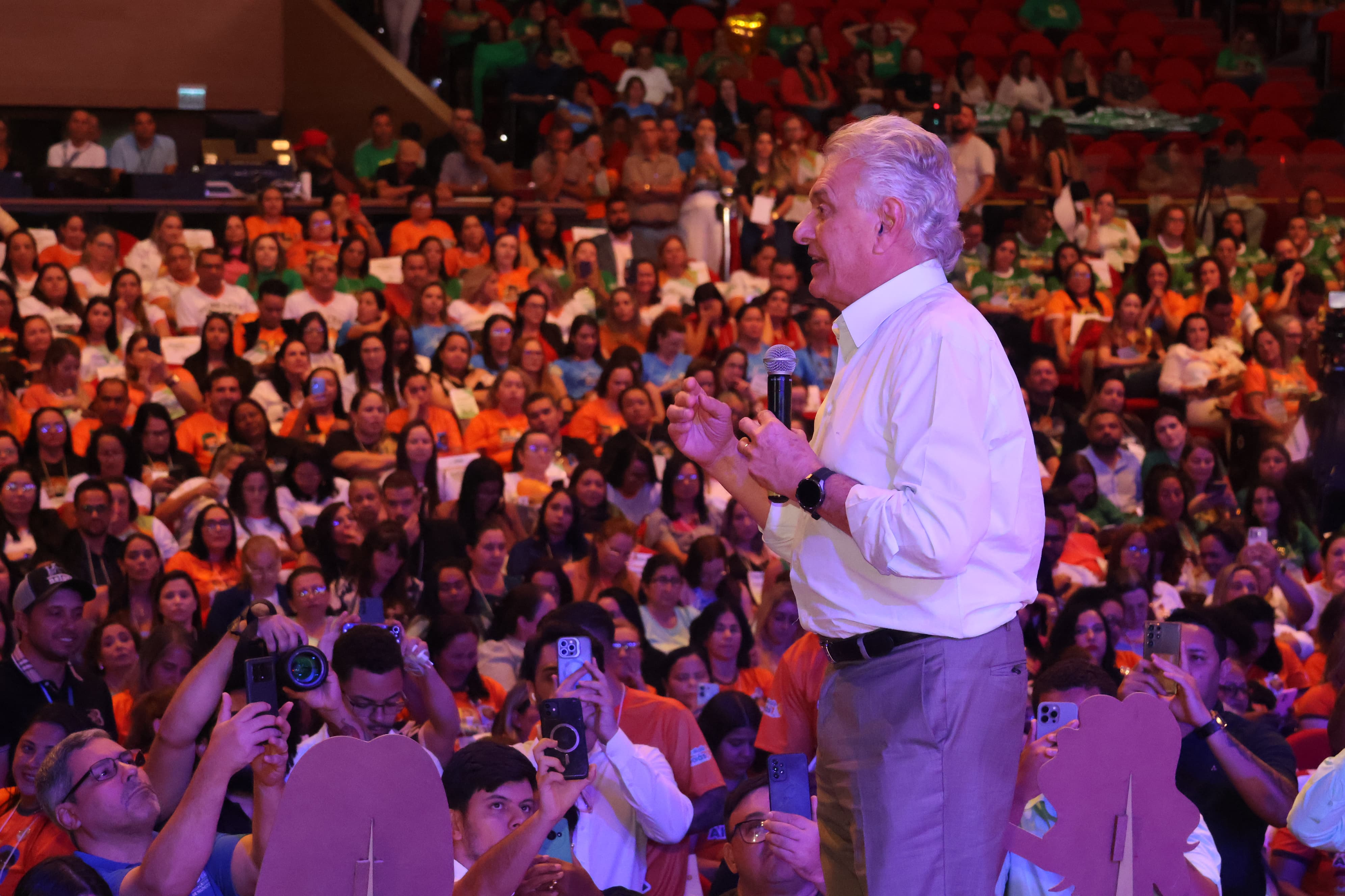 Uma grande celebração marcou, nesta terça-feira (10/06), a entrega do Prêmio Leia 2025 a 150 escolas públicas municipais de Goiás que se destacaram na alfabetização de seus alunos. A cerimônia, realizada no Centro de Eventos da Pontifícia Universidade Católica de Goiás (PUC-GO), em Goiânia, reuniu cerca de três mil pessoas, entre estudantes, professores, gestores, secretários municipais e prefeitos.