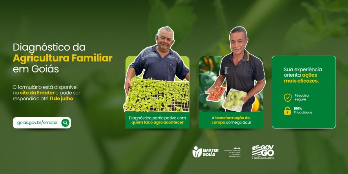 Fonte: https://goias.gov.br/emater/prazo-para-participar-do-mapeamento-da-agricultura-familiar-termina-nesta-sexta-feira-11-de-julho/